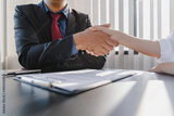 Businessmen shaking hands to congratulate real estate brokers about insurance broker contract agreement for home insurance, home buying and selling ideas and insurance