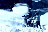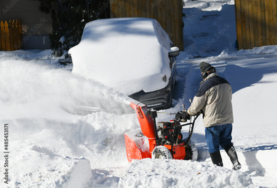 removing snow on the driveway of the house by snow blower