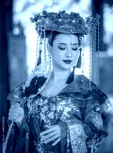 Portrait young beautiful Asian woman wear red cheongsam red.