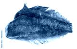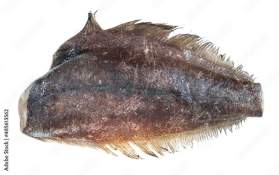 frozen headless halibut fish isolated on white