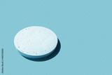 Abstract minimal scene - empty white podium on light blue background. Cylinder form stand, showcase, display case like 3d. Concept of beauty cosmetic product presentation and exhibitions