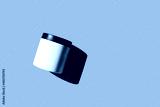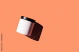 Advertising isolated container on peach background. Skincare, bodycare beauty product in plastic pot package concept. White unbranded, balsam, hand or face creme jar mockup