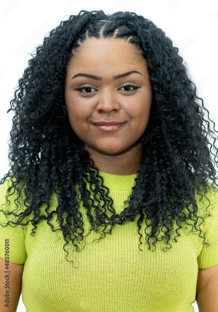 Passport photo of corpulent african american young adult woman