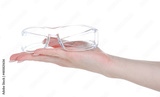Male warm mittens in hand on white background isolation