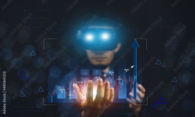 Businessman use smartphone visual screen technology trading online or Investment stock market.VR glasses metaverse avatar