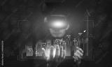 Businessman use smartphone visual screen technology trading online or Investment stock market.VR glasses metaverse avatar
