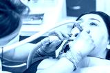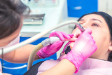 Female dentist curing a woman patient. Dental clinic and dentist appointment concept.