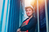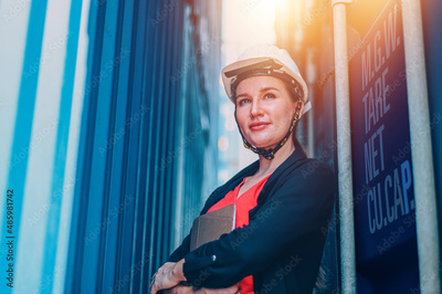 Manager business woman Inspecting Containers Shipment Warehouse.