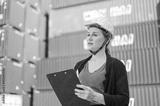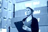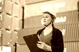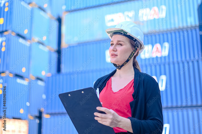 worker woman working checking at Container cargo harbor to loading containers.