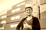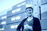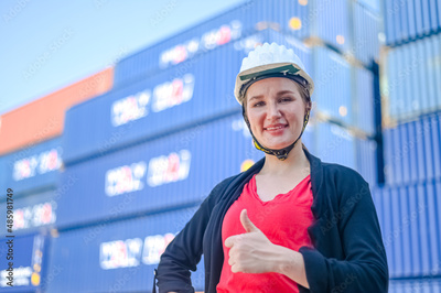 Manager Business woman standing at containers loading station Cargo shipment for import export delivery