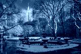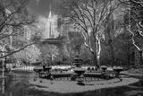 New York City Madison Square Park in winter with view of skyscrapers. Flatiron District of Manhattan