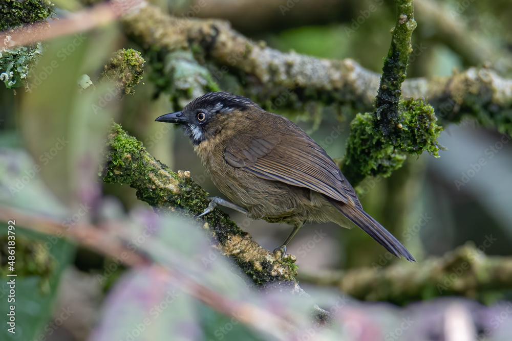 Nature wildlife image of Gray-throated babbler perching on tree branch