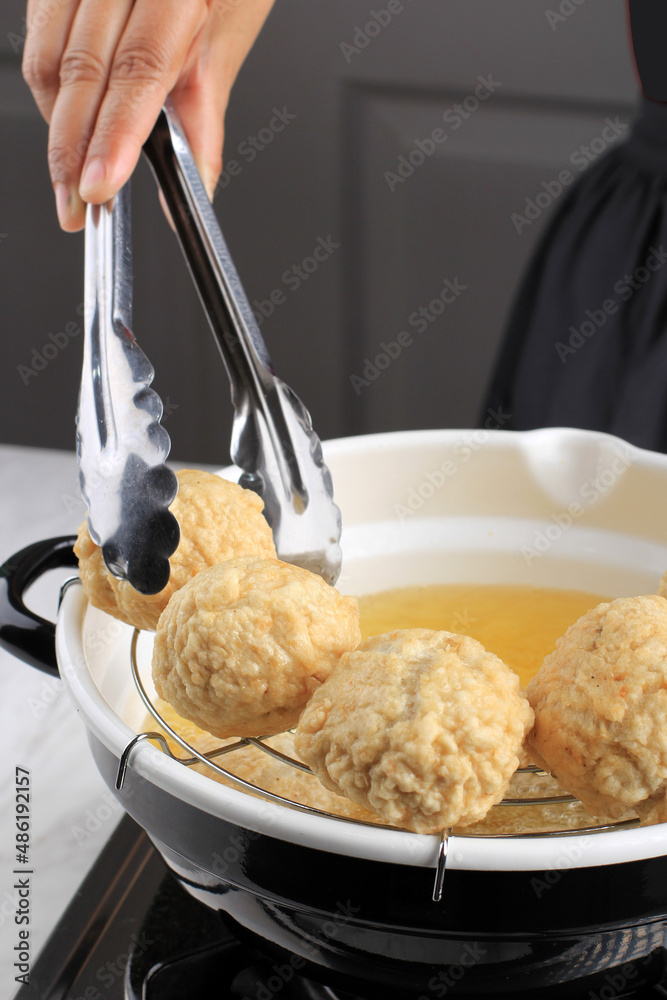 Process Frying Baso Goreng or Chinese Fried Meatball