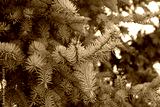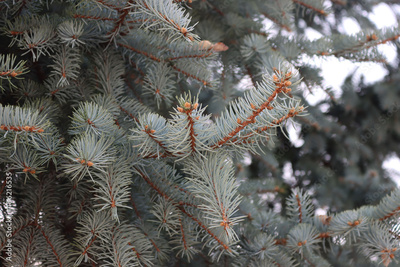 Branches of Picea pungens with brown cones. Colorado blue spruce with cones