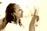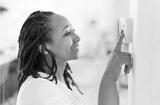 A frican woman lady adjusting the climate control panel on the wall wall thermostat