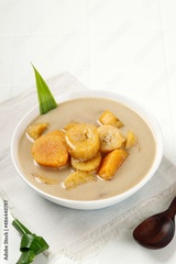 Kolak Pisang Ubi is Banana Sweet Potato Compote. Popular Indonesian Dessert Made from Coconut milk, Palm Sugar and Pandanus Leaves.
