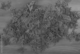 Dry leaves of thuja tree on wooden background. Pattern of dried thuja branches, texture of fallen dead leaves.
