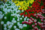 Different sorts and colors of blossoms of a tulip in the garden mixed into,Colorful Tulip flower background in the garden
