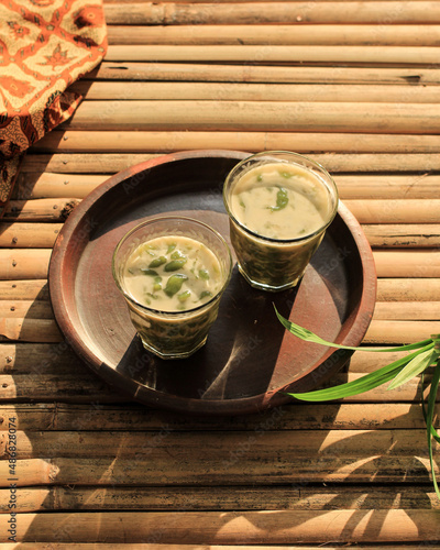 Cendol or Dawet is Indonesian Traditional Dessert Made from Rice Flour, Palm Sugar, Coconut Milk, and Pandanus Leaves.