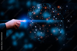 Digital communication and virtual technology concept WEB 3.0.hand touch globe internet.