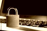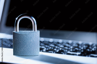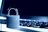 Padlock on laptop. Internet data privacy information security concept. Antivirus and malware defense.