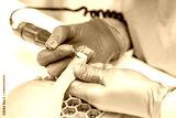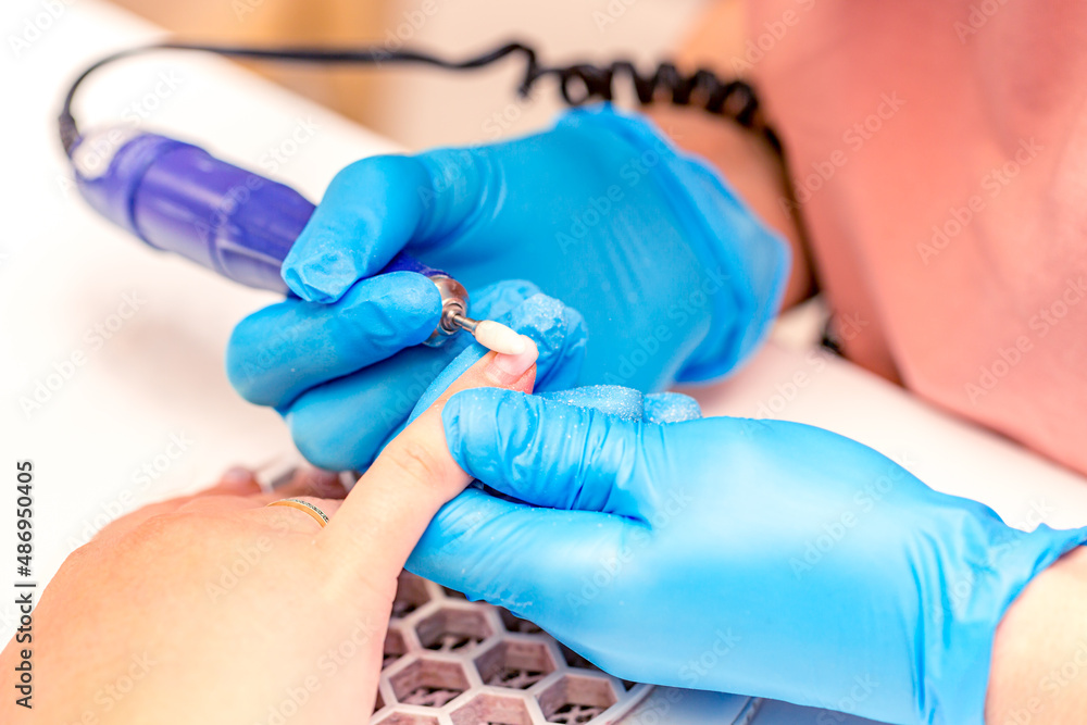 Manicure process. The manicure master polishes the nail using a machine. Close up manicure process