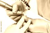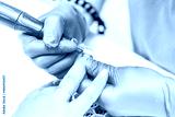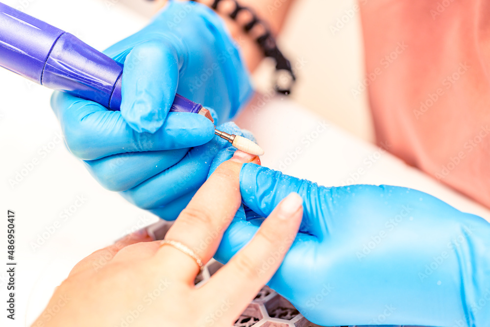 Manicure process. The manicure master polishes the nail using a machine. Close up manicure process