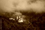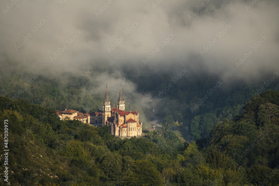 Marian sanctuary in Covadonga seen from the top of the mountains