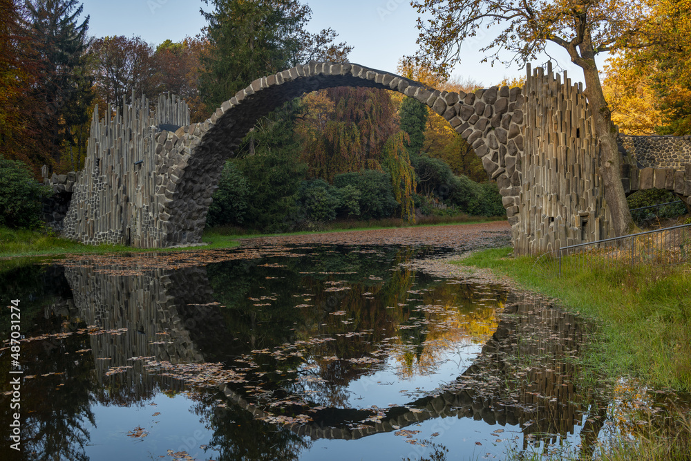 Bridge in rhododendron park in Kromlau in a beautiful autumn mood