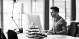The successful stay consistent. Shot of a focused young businessman using a computer at his desk in a modern office.