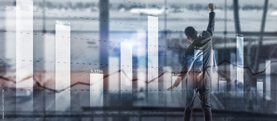 Finacial concept. Business Graph Stock Market chart. Digital charts and screen interface