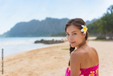 Asian beauty woman portrait on hawaiian beach Hawaii vacation travel. Summer healthy skin body care model.