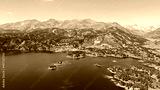 survol d'un lac de montagne matemale et des forets dans les Pyrénées-Orientales, sud de la France, parc naturel des Bouillouses