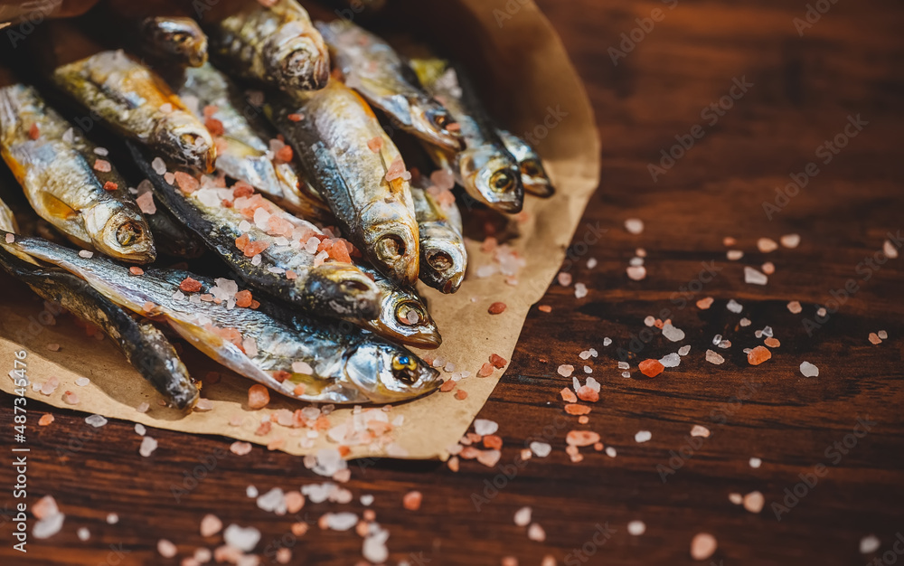 Lots of sun dried fish in the paper bag.