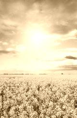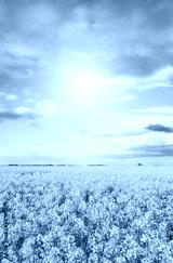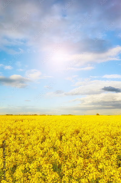 Field of rapeseed in blossom on a sunny day.