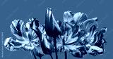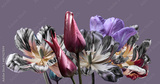 spring flowers, multicolored tulips on a light purple background, studio shot.