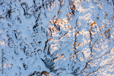 Amazing sunset in the alps of Switzerland. Wonderful flight with a drone over an amazing landscape in the canton of Uri and Glarus. Epic view over a street called Klausenpass.