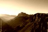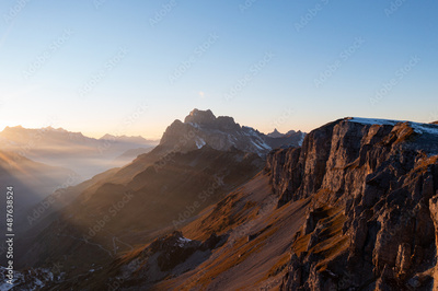 Amazing sunset in the alps of Switzerland. Wonderful flight with a drone over an amazing landscape in the canton of Uri and Glarus. Epic view over a street called Klausenpass.