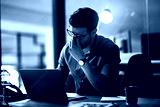 Burnout is killing his career. Shot of a young businessman experiencing stress during a late night at work.