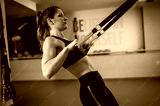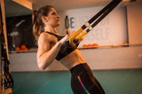 A woman in the gym practices stretching