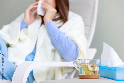 Young woman suffering from cold.
