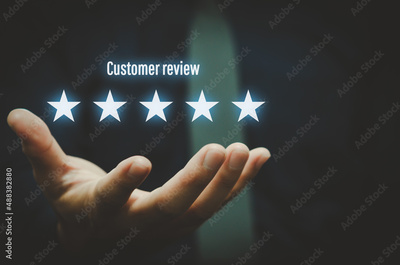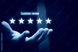 Customer review concept excellent service for satisfaction five star rating with business man touch screen.