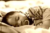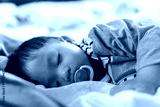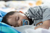 Close-up Adorable cute toddler or baby sleeping on bed at night sweet dream in bedroom-Copy space