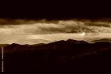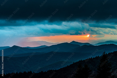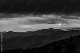 The sun barely peaks out of the clouds before setting over the Blue Ridge Mountains