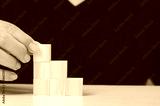 Hand putting and stacking blank wooden cubes for icons or symbols.