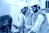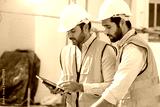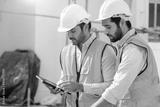 Engineers group consult construction on site building working at construction site,Construction residential new house in progress at building site.