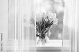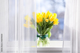 Bouquet of beautiful yellow tulip flowers on windowsill