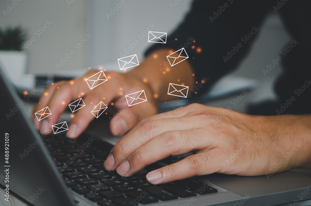 Marketing business sending information to customers or hacking online transactions. Business concept technology.
