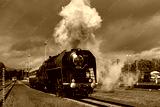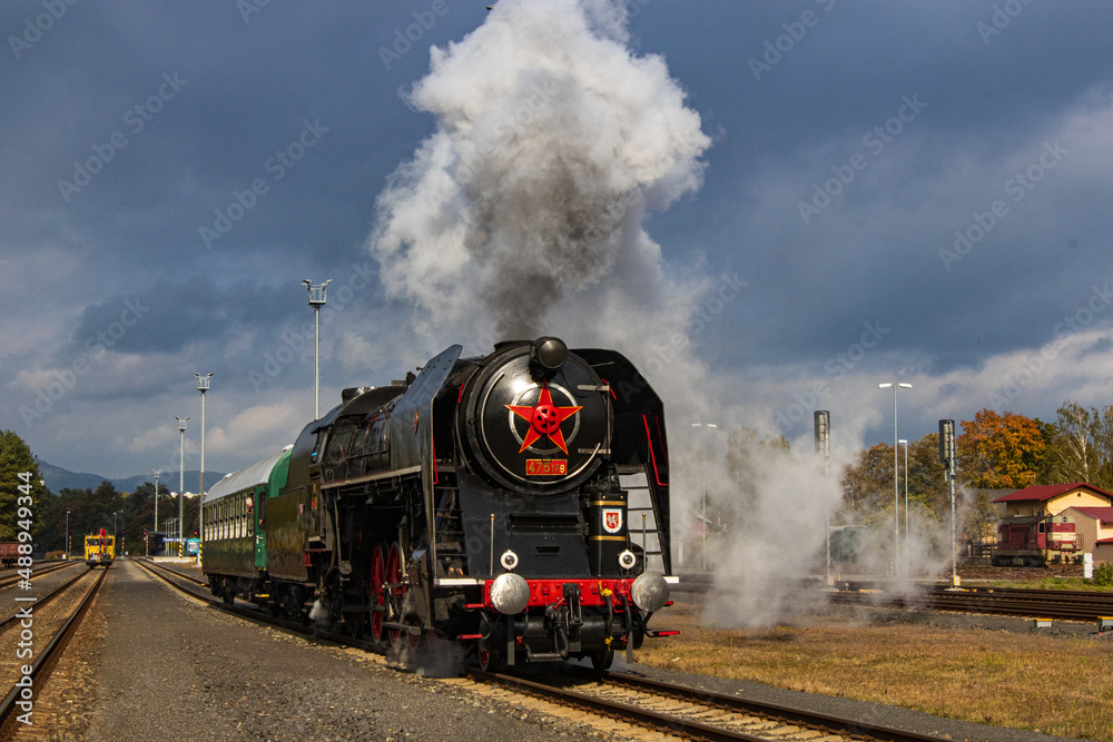 departure of a steam locomotive at a Czech railway station