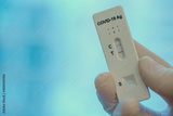 Virologist showing Positive Antigen Rapid Test for Coronavirus.